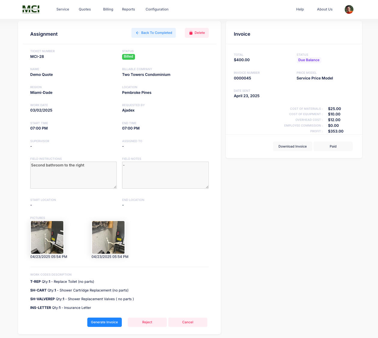 Generate clear, detailed invoices straight from your tasks or quotes—no need to retype a thing. Every line item is customizable, giving you full control over quantities, pricing, taxes, and discounts. Whether you're billing for time, materials, or flat-rate services, ForemanTek adapts to your workflow.