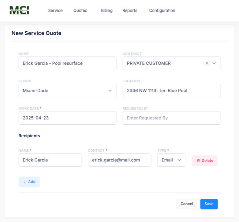 Our quote builder, lets you generate polished, professional estimates that reflect your brand—complete with your logo and formatting. Whether you're quoting for a home repair, pool resurfacing, delivery estimate, or consulting session, you can respond faster, stand out from the competition, and add more sales.